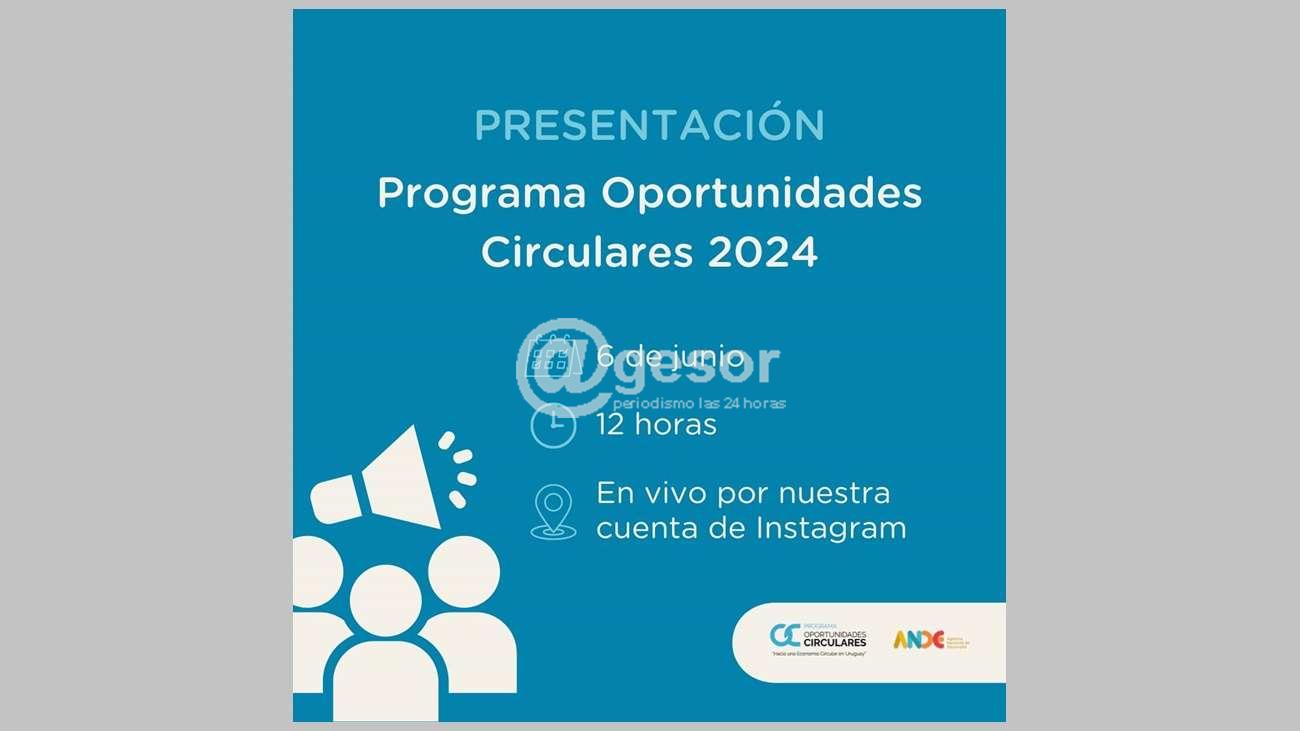 En la presentación de Oportunidades Circulares, que se realizará en la sala Carpincho del Antel Arena este jueves a las 12 horas, participarán la presidenta de la Agencia Nacional de Desarrollo (ANDE), Carmen Sánchez; el Subs...
