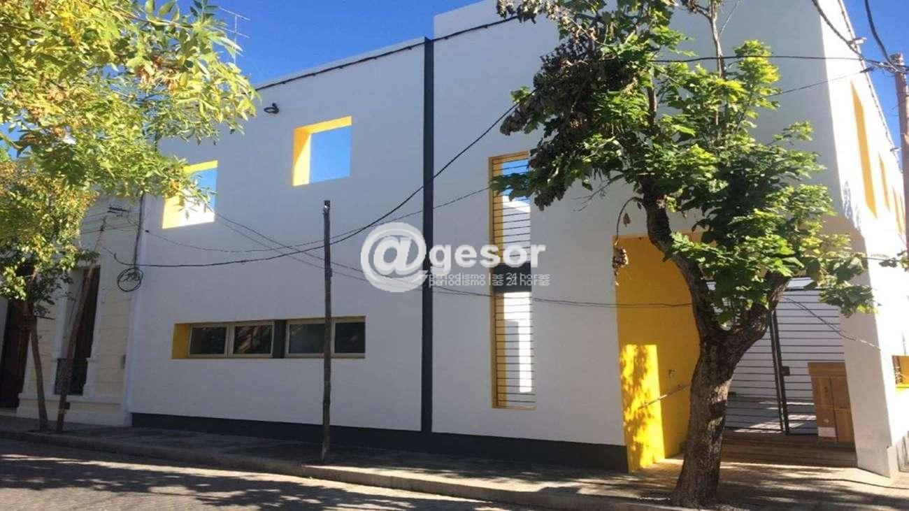 El acceso al edificio de la Intendencia de Soriano que cuenta con un código QR que deriva a una completa reseña sobre este emblemático edificio del gobierno departamental.