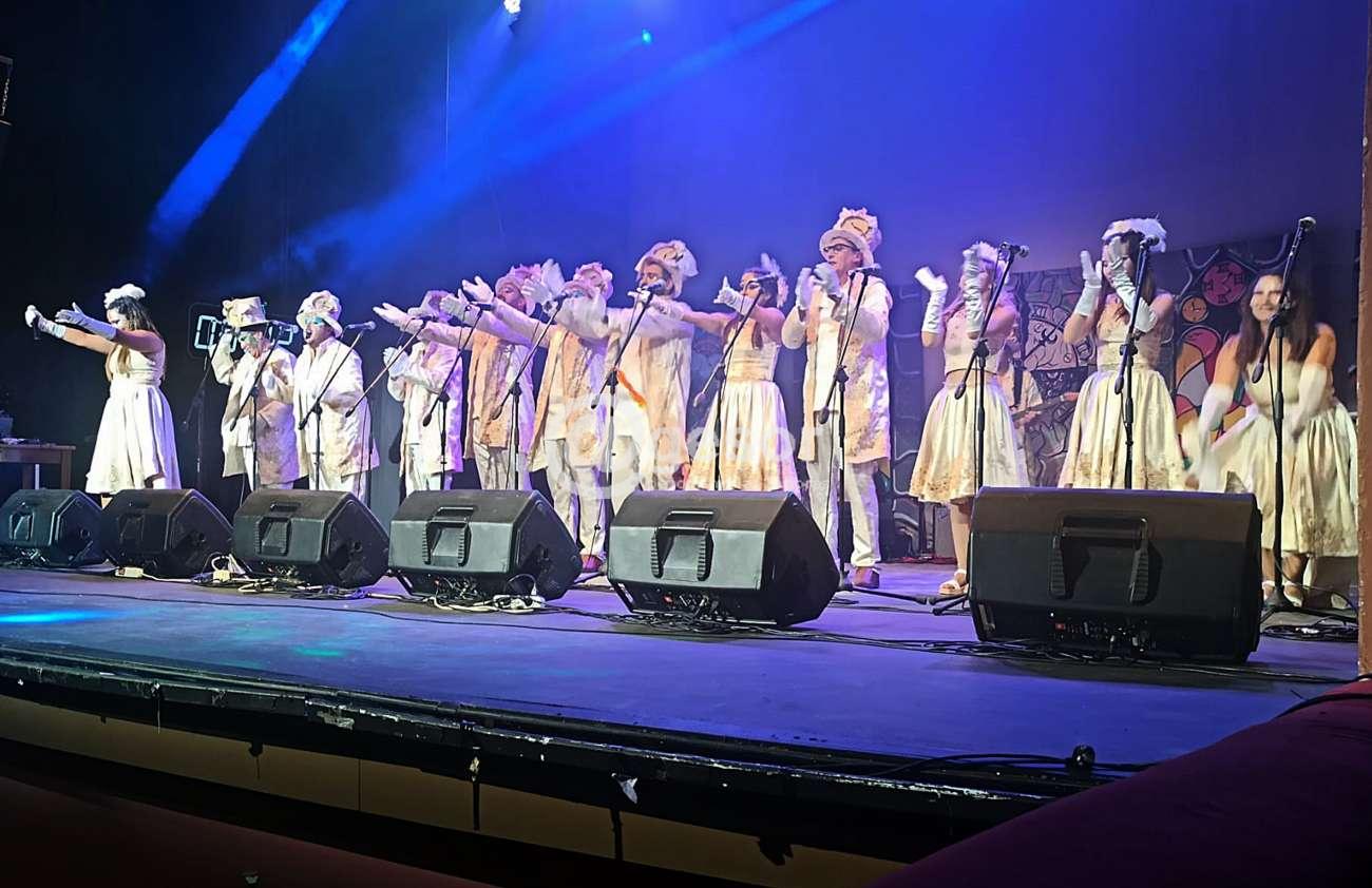 A segunda hora en el escenario "Hernán Viera Castro" del Teatro "28 de Febrero" de Mercedes, en el marco de la cuarta etapa de la segunda ronda del Concurso Interdepartamental de Agrupaciones de Carnaval de Soriano, le tocó el turno a la murga mercedaria, La Timbera.