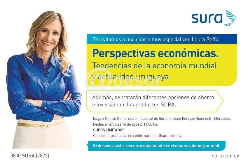 Desde el Centro Comercial e Industrial de Soriano se informa sobre la realización de manera conjunta con SURA de una conferencia denominada "Perspectivas Económicas: el mundo, la región y Uruguay", el objetivo de la empresa es difundir información que permita a quienes concurran al evento estar en condiciones de...