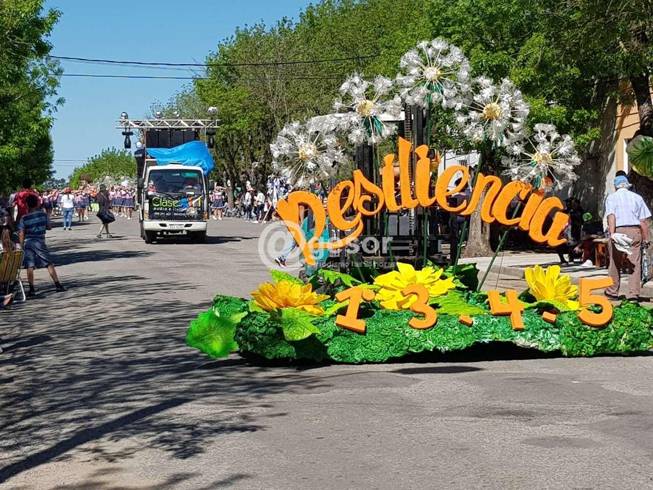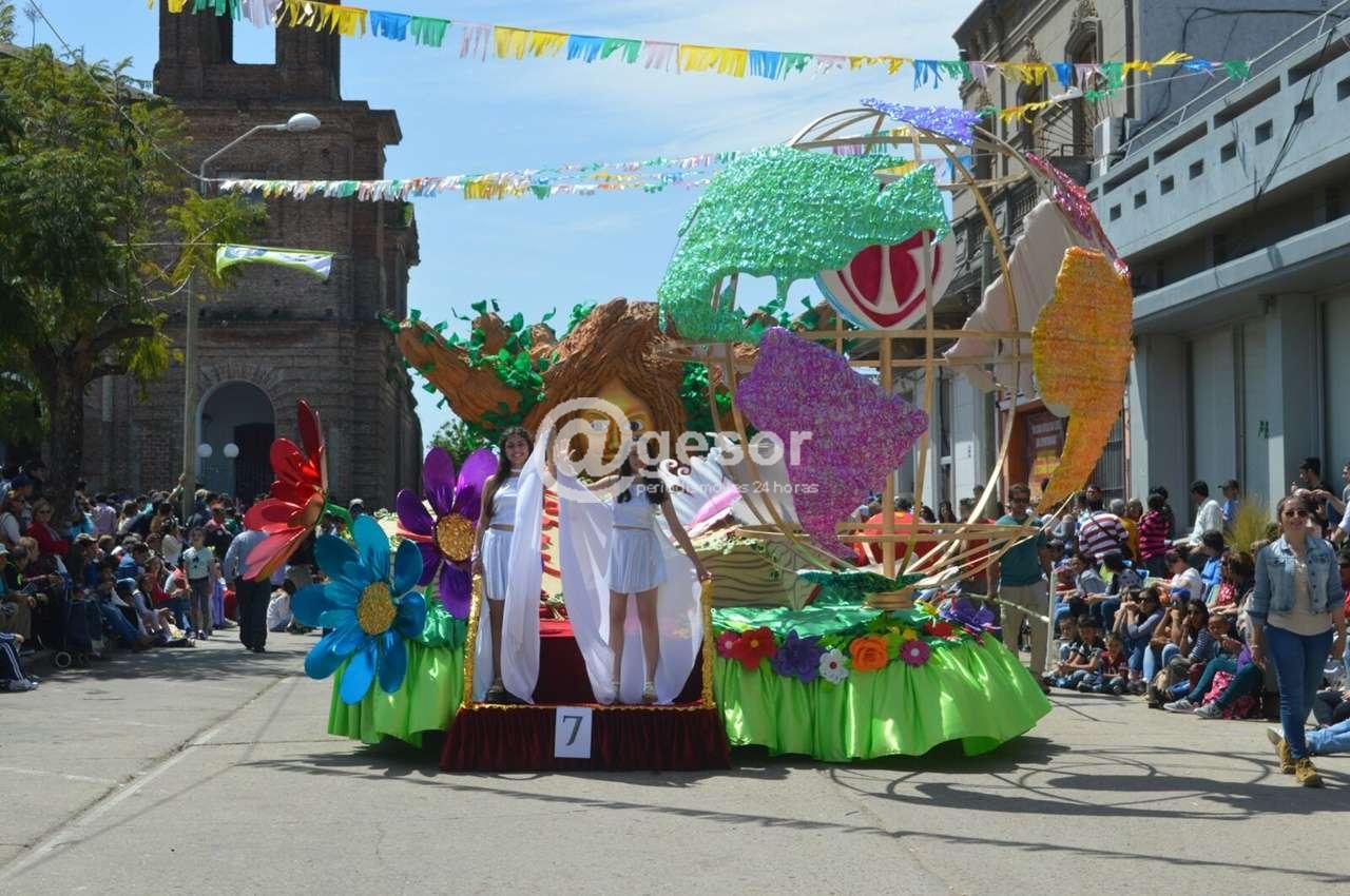 El primer premio del desfile de carrozas de la Fiesta Nacional de la Primavera fue para el carro La Carroza N° 5 de los Grupos unidos de UTU.