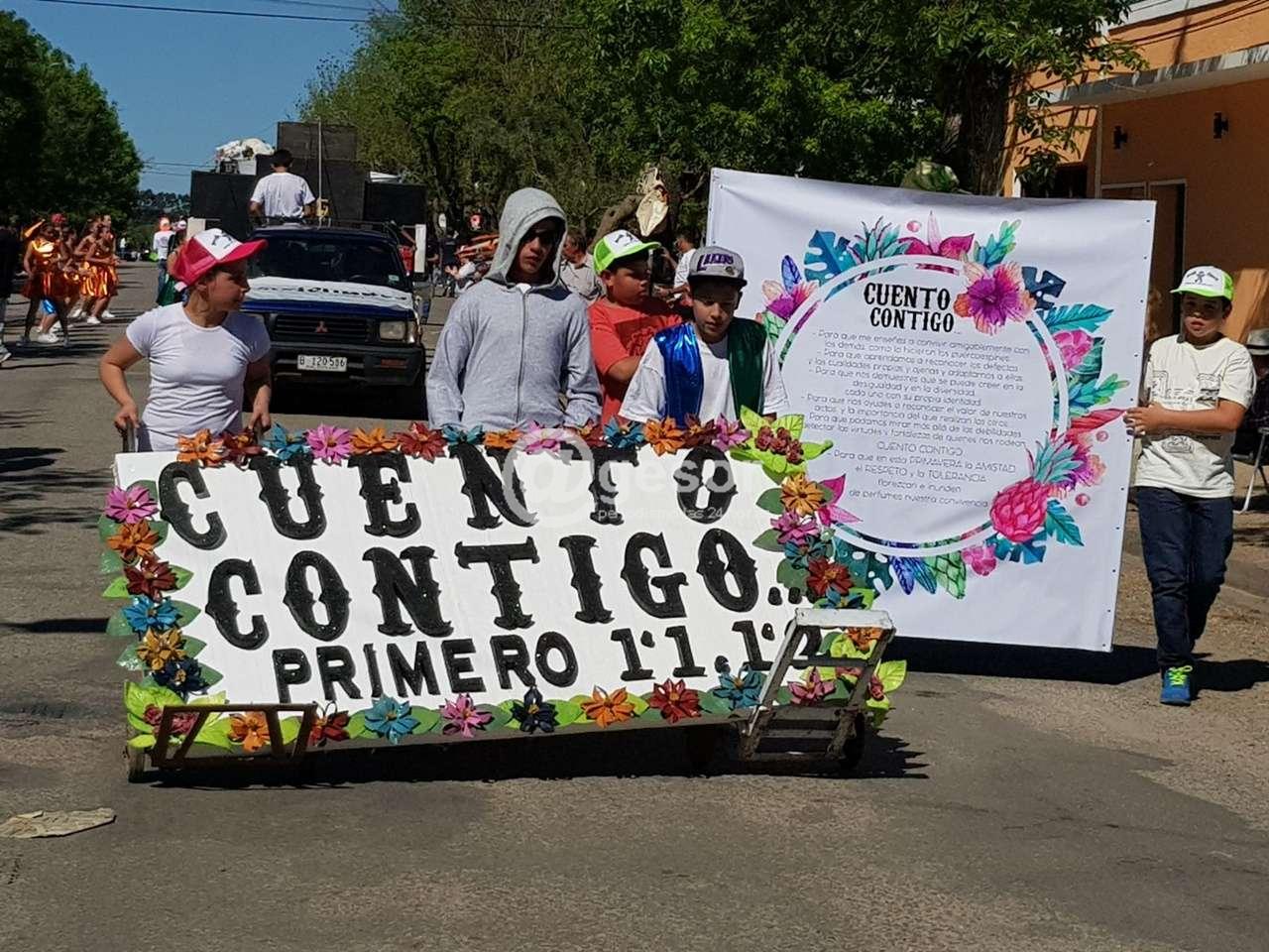 Carroza Nº 1, de 1º1 y 1º2, “Cuento contigo”. Mensaje: “Cuento contigo ... para que me enseñes a convivir con los demás, como lo hicieron los puercoespines … Para que aprendamos a reconocer defectos y cualidades propias y ajenas, y adaptarnos a ellas... Para ...